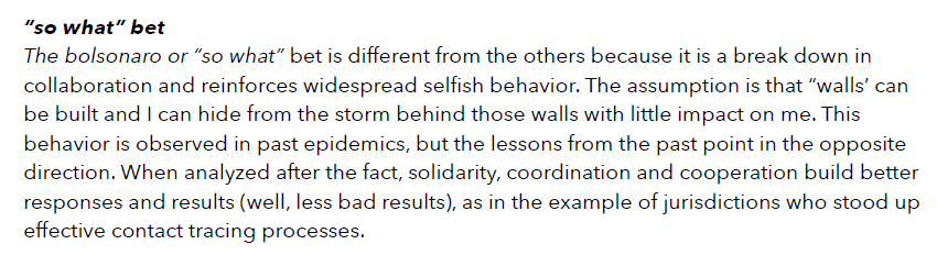 – From science to policies and, unfortunately to the worst of politics – as we learn from comparing New Zealand, or Europe, to Brazil, UK and US policy response to the pandemics (or ‘the bolsonaro bet’ – Woods, 2020)